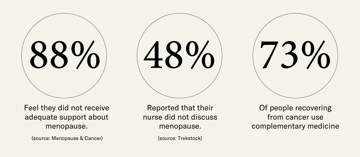 Those of us experiencing menopause after cancer often feel left out of the growing conversation about the lifestage. Research by the brilliant online community, social enterprise and podcast series team Menopause & Cancer, found that 88% of their members did not receive adequate help in managing their menopausal symptoms.